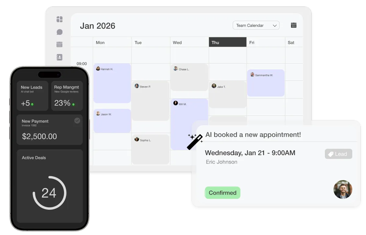 Calls, texts, forms, and DMs are answered in seconds — even nights, after-hours, and when you’re on a job.
